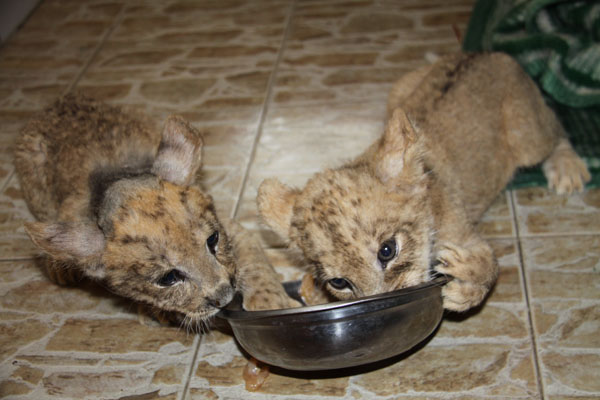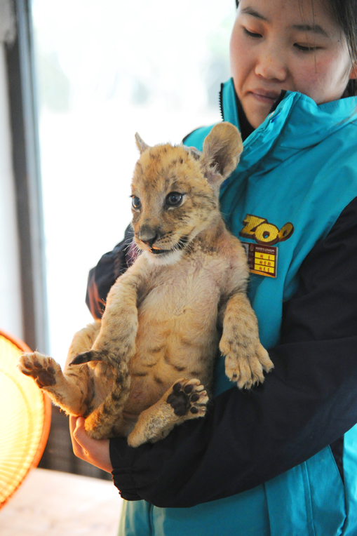 育幼师胡月介绍说,因为国内没有繁育虎狮兽成体的先例,因而虎狮兽养育难度非常大。对一般食肉动物来讲,三个月龄便可表示个体成活,四个月龄就可以分窝,即幼崽离开母亲开始独立生活。但由于虎狮兽天生免疫力低下,基因排斥厉害,动物世界会延长人工育幼的时间,尽可能延长对虎狮兽的观察照顾期,利用长期人工哺乳来补充虎狮兽的先天不足。目前,动物世界内这只仅存的虎狮兽已有两个多月龄,吃少量的肉食和其它调剂食物,健康状况良好,身体健壮,发育正常。