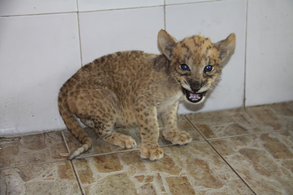 我国第一只虎狮兽出生于2002年8月的南京红山森林动物园,但小兽出生后第7天便死亡;