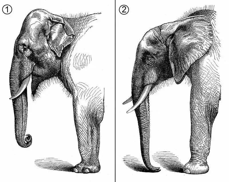 ▲左亚洲象,右非洲象