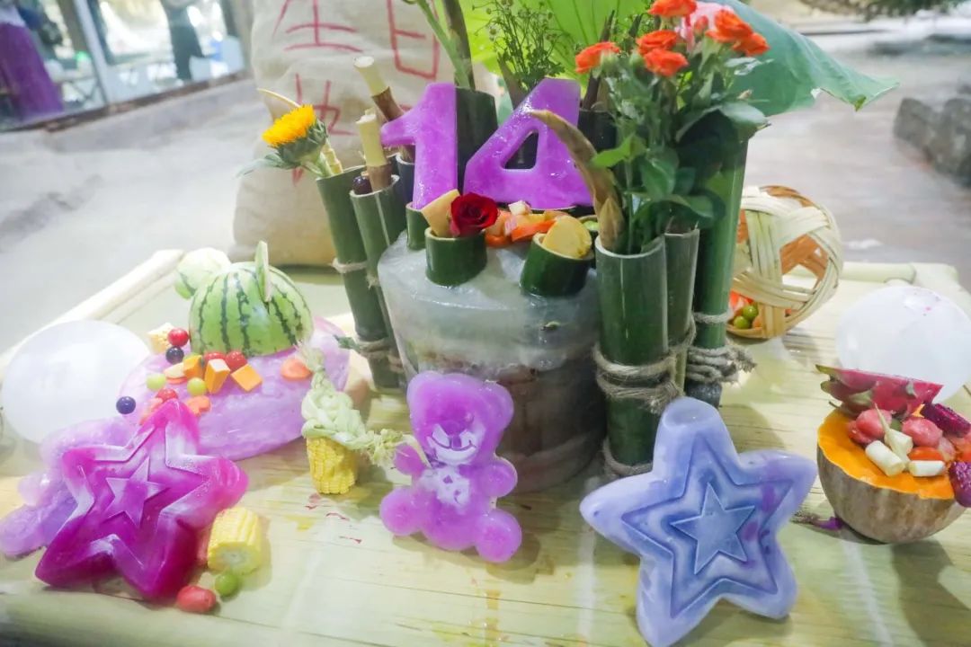 上面放着火龙果汁冻成的“14”冰块